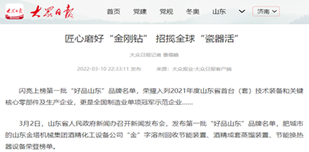 歷經(jīng)多年的拼搏創(chuàng)新,金塔已經(jīng)成為規(guī)模化、成套化、技術(shù)化及節(jié)能化的酒精生產(chǎn)及廢液處理裝備專業(yè)制造商,是《酒精蒸餾塔》 《糠醛水解鍋》《糠醛蒸餾塔》等國家行業(yè)標(biāo)準(zhǔn)的制定者。以“金”字為商標(biāo)的酒精生產(chǎn)及其節(jié)能環(huán)保設(shè)備是國內(nèi)客戶尤其是知名大型酒業(yè)公司信賴的品牌,與中國酒業(yè)的龍頭企業(yè) 五糧液集團(tuán)三次合作,深得好評和信賴,與天冠集團(tuán)、阜豐集團(tuán)、吉良集團(tuán)等大型燃料乙醇巨頭攜手,推動了燃料乙醇技術(shù)裝備的進(jìn)步,向國內(nèi)28個(gè)省市區(qū)近2000家客戶提供了產(chǎn)品和技術(shù)服務(wù),建立了深厚的合作基礎(chǔ),并出口東南亞、東歐、非洲、南美等多個(gè)國家。